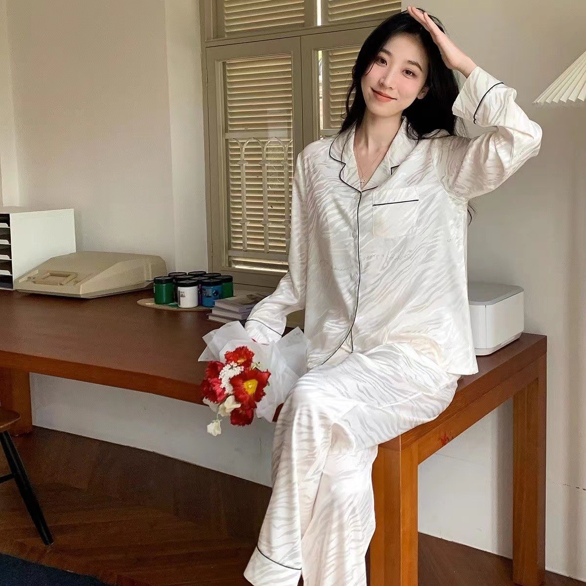 颜色: กางเกงสีขาวแขนยาว 尺码: L (90-105 Catties) |